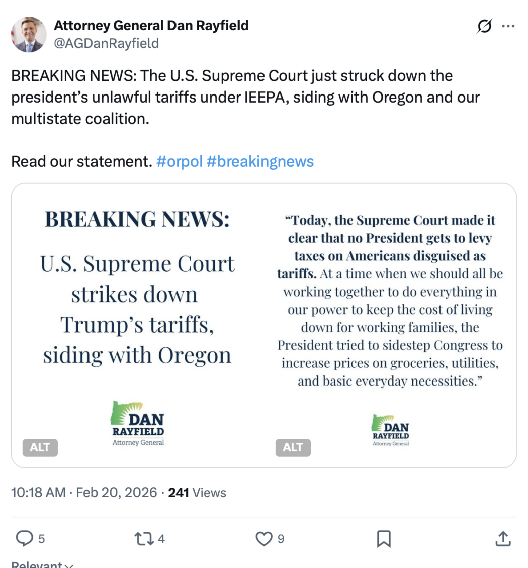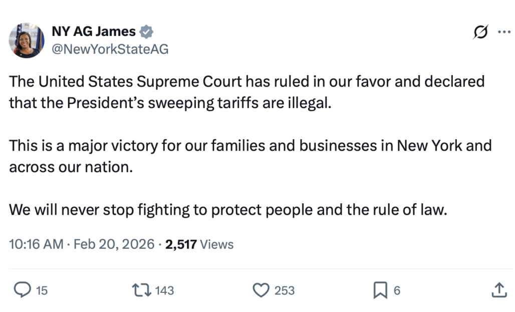 DEM AGs WIN: SCOTUS Rules In Favor of Democratic AGs’ Lawsuit, Declares Trump Tariffs Illegal