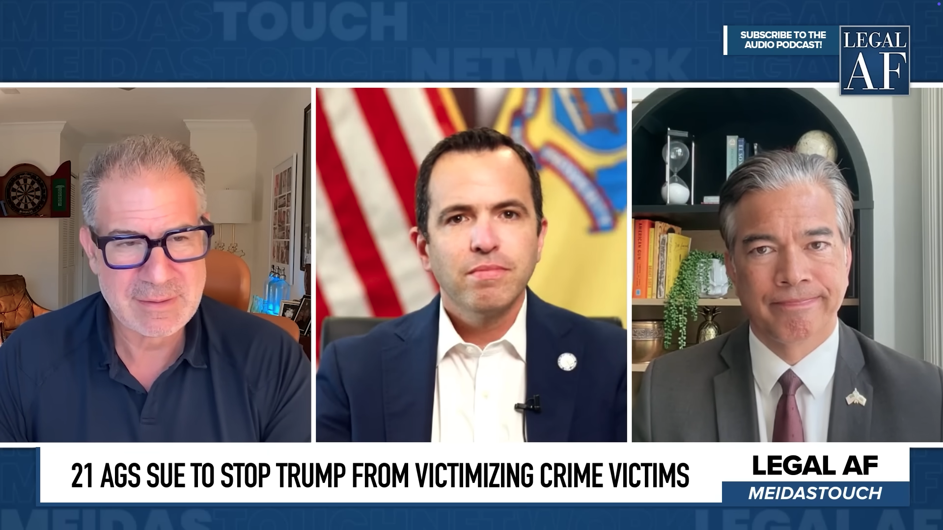 WASHINGTON, DC – In an episode of the Legal AF podcast this week from the MeidasTouch Network, California Attorney Genral Rob Bonta and New Jersey Attorney General Matthew Platkin sat down with Michael Popok to talk through their latest lawsuit against the Trump administration for withholding vital funds—$1.4 billion— to victims of violent crime, otherwise known as the Victims of Crime Act (VOCA).
