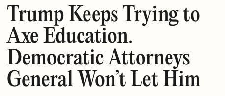 “And make no mistake, this Administration will do everything in its power to hobble our nation’s schools—by cutting funding, supports, programming, and accountability measures that are critical to ensure every student has equal access and can live up to their potential,” AG Campbell wrote. “But state attorneys general have the power to fight back… it is only one battle among many we are fighting to protect our children and our future. With the rule of law on our side, we are winning far more than we are losing.”